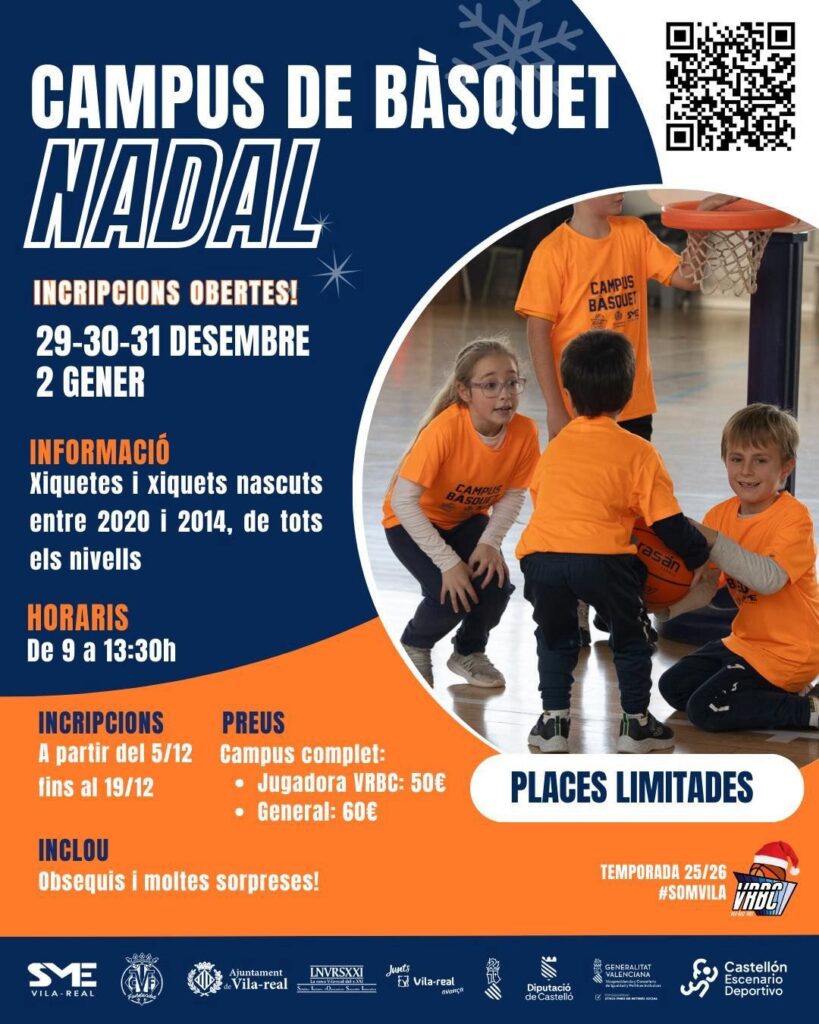 Des del Vila-real BC volem oferir-vos un programa complet de sessions tècnico-tàctiques individuals, col·lectives i jocs esportius totalment dirigits pels nostres entrenadors/es, on durant aquestes festes faran gaudir del bàsquet a tots el xiquets i xiquetes al Campus Nadal de Bàsquet al Pavelló Bancaixa.